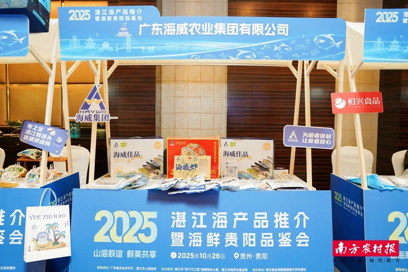 1000萬食安保障!海威集團亮相貴陽,助力粵黔兩省漁業(yè)合作發(fā)表時間:2025-10-28 11:10來源:圖:南方農(nóng)村報 10月26日,2025湛江海產(chǎn)品推介暨海鮮貴陽品鑒會在貴州省貴陽市舉行。廣東海威農(nóng)業(yè)集團有限公司作為湛江漁業(yè)產(chǎn)業(yè)的重要代表之一的企業(yè)受邀參展,不僅展示了湛江特色優(yōu)質(zhì)海產(chǎn)品,更以堅實的食品安全保障體系贏得市場認可,助力粵黔兩省漁業(yè)合作邁向新臺階。